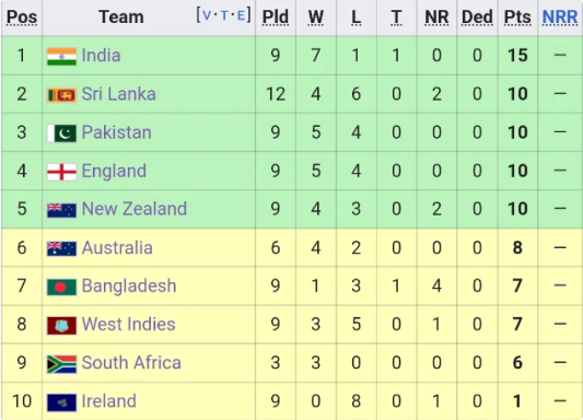• If a match ends in a tie or gets canceled because of rain, each team will get 1 point.